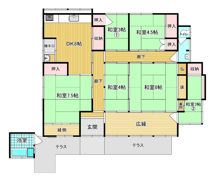 | 備考 | 構造・規模:木造 平家建 建築年次:昭和21年 令和元年頃から空家となった。 家庭菜園:可 駐車場:10台 物置:有り ライフライン:地下水、トイレ洋式/汲み取り、電気引込み済み、風呂電気温水器、台所電気温水器 生活環境:最寄りの商店(12.9km)、最寄りの医療機関(6.4km)、最寄りのバス停(0.2km)、水引小学校(7.4km)、水引中学校(6.5km)、薩摩川内市本庁(15.9km) |