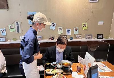 当日市長は、甑島の食材がふんだんに使われた和定食をいただき、丁寧なメニューの説明を受けました。