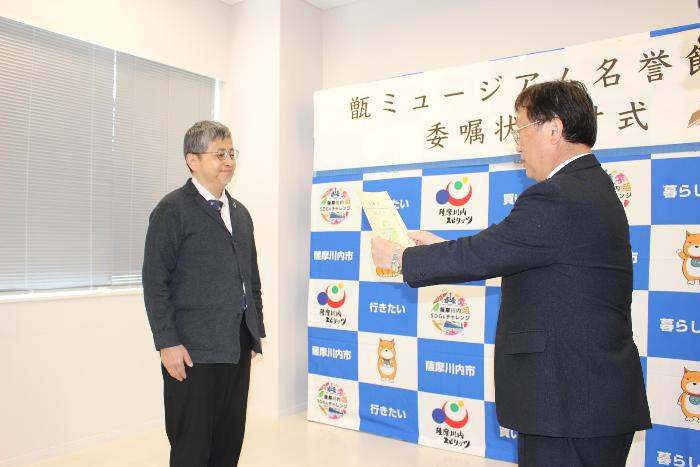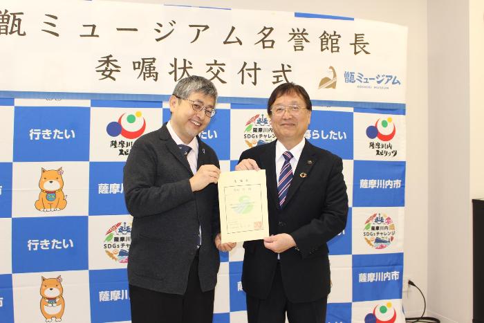 甑ミュージアムの名誉館長に真鍋真先生が就任され、令和7年12月7日に委嘱状交付式を行いました。