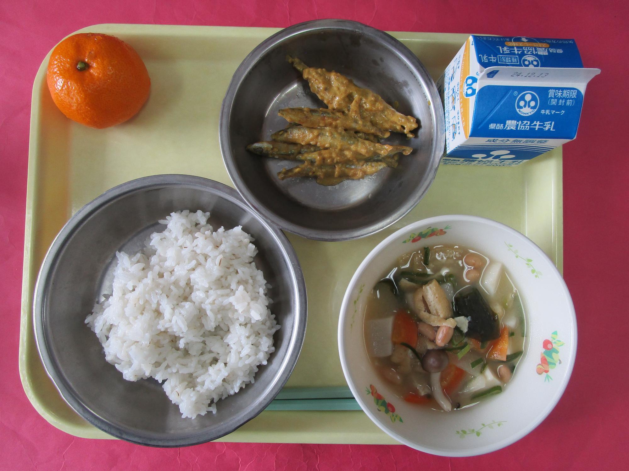 当給食センターは、約7,600食を2献立で調理し提供をしております。