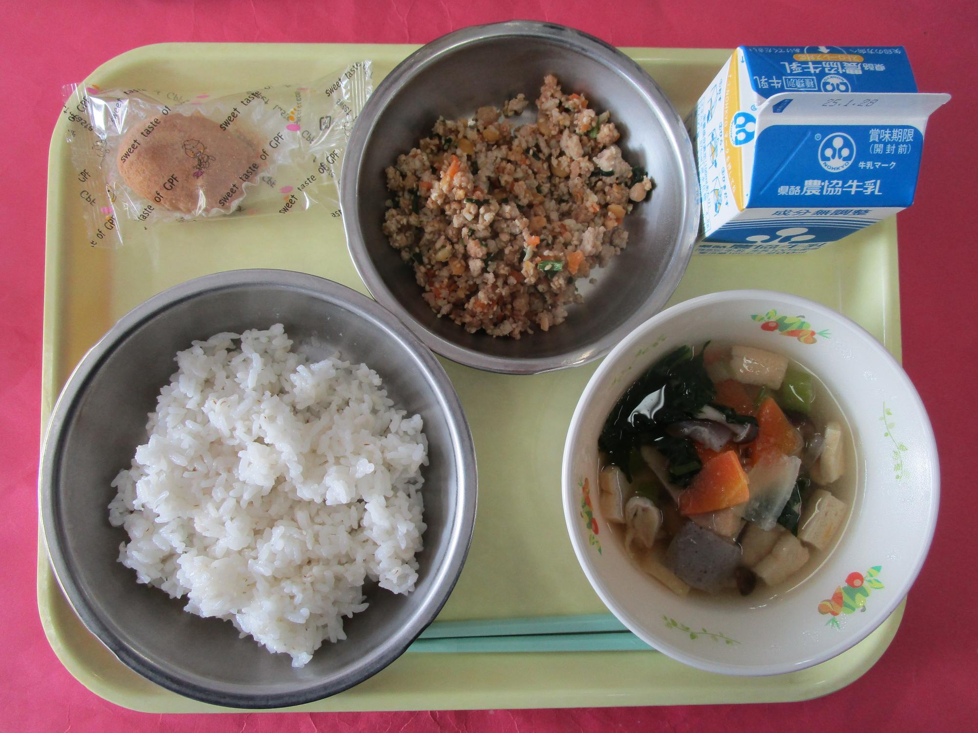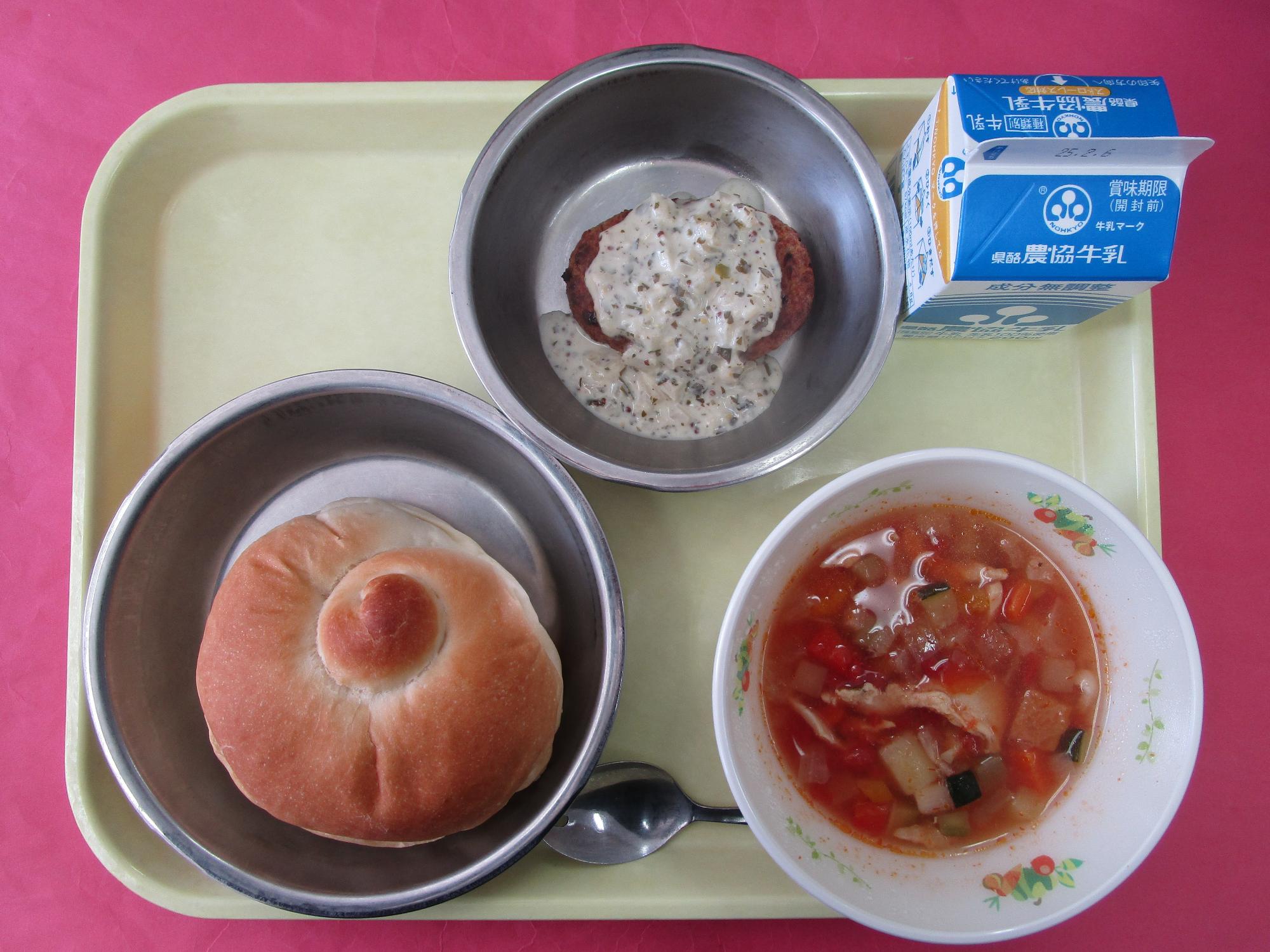 当給食センターは、約7,600食を2献立で調理し提供をしております。