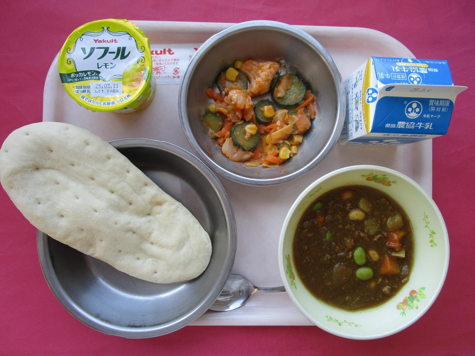当給食センターは、約7,600食を2献立で調理し提供をしております。